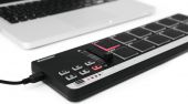- 12 backlit, velocity-sensitive drum pads can send note, MIDI CC or program change
