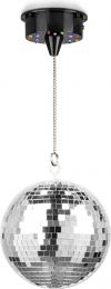High reflection disco ball with a battery powered low-noise motor for mirror balls up to 2 kg fitted with 18 coloured LEDs. Especially in the dark, this produces a stunning effect. Stand alone or sound activated.