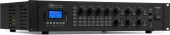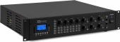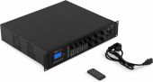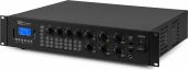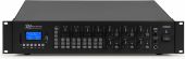 |  | The PRM606 is a rack-mountable amplifier that can either be used as 100V amplifier or as a standard low-impedance amplifier. This 6 zone amplifier is designed for multi-room systems requiring different audio sources. It's equipped with BT receiver and USB/SD ports for MP3 playback including a bright LCD display with ID3 Tag. The PRM606 is provided with switchable XLR inputs with 24V Phantom Power, especially for paging and condenser microphones. Especially designed for applications such as paging, announcements, intercommunications, background music, broadcasting in industrial plants etc. - 100V matrix amplifier with 6 independent output zones