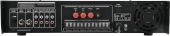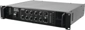 | Power supply: | 230 V AC, 50 Hz | | Power consumption: | 500.00 W | | Output power: | 250 W RMS | | Power connection: | Fixed power supply cord with safety plug | | Frequency range: | 80 - 16000 Hz | | S/N ratio: | >75 dB microphone >85 dB line | | THD: | <0.5 % at 1 kHz | | Cooling: | Cooling fan | | Impedance: | Public address systems 100V; 4-16 ohms; Public address systems 70V | | Zone output: | 6 switchable zones | | Circuitry: | Class AB | | Controls: | Power on/off transient; Overvoltage; short-circuit | | Connections: | Input: microphone via 2 x 6.3 mm plug (unbal.) Input: microphone via 1 x 3-pin XLR/6.35mm jack (F) combination socket (mounting version) Input: line via 3 x stereo RCA 0.3 V Output: speaker via screw terminal Output: rec. via 1 x stereo RCA | | Equalizer: | Master: 1 x 2-band tone control mono | | Housing design: | (19") 48.3 cm rack installation 2 U | | Dimensions: | Width: 48.3 cm Depth: 38.5 cm Height: 8.9 cm | | Weight: | 10.95 kg |