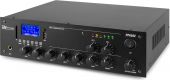 |  | The PPA502 is a 100V amplifier with 4/8 ohms, 70V and 100V outputs characterized by easy use, excellent performance and reliability and is therefore particularly suitable for a wide range of small and medium-sized installations. This range of amplifiers is equipped with a multimedia player (USB / SD ports and BT) for MP3 playback. It is also equipped with an equalizer (on the mp3 player), 2 microphone inputs, an auxiliary input and an external 12V connector too. The PPA502 is perfect for commercial environments which require complete control over 2 areas/rooms. - 50W PA amplifier with 2-zones