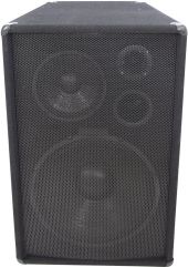 | Power: | Program: 1000W Rated: 500W RMS | | Frequency range: | 30 - 18000 Hz | | Sensitivity: | 97 dB (1W/1m) | | Impedance: | 8 ohms | | Attachment system: | Flange: Ø 35mm | | Connections: | Input: speaker via 2 x speaker built-in socket (F) | | Speaker: | 1 x woofer 15" Basket material: steel Conematerial: cardboard/paper 1 x midrange speaker 8" 1 x tweeter | | Type of speaker: | Compact cabinet speaker | | Type of construction: | Vented | | Carrying handle: | 2 pc/pcs | | Material: | , 15 mm | | Color: | Black | | Dimensions: | Width: 49 cm Depth: 37 cm Height: 75.5 cm | | Weight: | 21.40 kg |     |  |  |  | |
