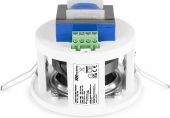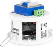 | Speaker type | Passive (non-amplified) | | Product colour | White | | Output power: RMS | 6W | | Diameter woofer | 3" | | Magnet type | Ferrite | | Impedance | 100V | | Tappings power (100V) | 1.5W, 3W, 6W | | Frequency response | 150Hz - 15.000Hz | | SPL @ 1W/1m | 85dB | | IP rating | N/A | | Mounting diameter | 85mm | | Mounting depth | 73mm | | Dimensions (L x W x H) | 99 x 80mm | | Weight (kg) | 0,50 | pdf