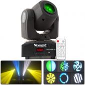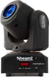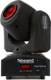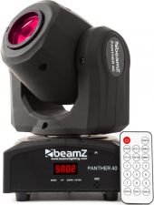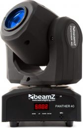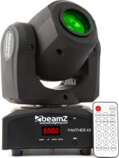 En meget kompakt Panther moving head med en meget lys effekt. 45W LED'en producerer en 12 ° stråle. Moving head'et er udstyret med et farve- og gobohjul til ultimativ kontrol. Gobo hjulet har 7 forskellige gobos + åbne og farvehjulet har 7 farver + hvid. Dette Panther-moving head fungerer i DMX, stand-alone mode eller med IR-kontrol. Når du arbejder i DMX-tilstand, kan du vælge 3 forskellige DMX-kanaler.