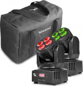A very compact LED moving head with 4x 9W 4-in-1 LEDs for extremely high light output to produce an ingenious light show with a perfect colour mix. Comes with a 26° beam angle, 14 and 16-Channel DMX mode, colour strobe, electronic dimmer etc. Smooth but extremely fast 540° Pan and 180° Tilt movements. This kit is delivered as 2 pieces in a BeamZ soft bag.