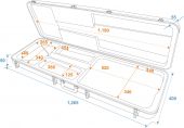 | Carrying handle: | 1 pc/pcs | | Lock: | Spring lock: 4 pc/pcs | | Material: | ABS Acrylonitrile butadiene styrene | | Color: | Black | | Dimensions: | Width: 119 cm Depth: 34.5 cm Height: 7.5 cm | | Weight: | 4.80 kg |  |  |  |  | |