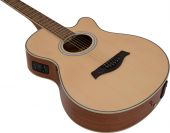 | Battery: | 1 x 9.0 V E block 6F22 zinc carbon built-in | | Version: | Right hand version | | Neck: | Nato, Fingerboard: walnut 21 frets | | Body: | 4/4 Cutaway-form Sapele | | Scale length: | 650 mm | | Nut width: | 43 mm | | Bridge: | Maple | | Number of strings: | 6 | | Equalizer: | 1 x 2-band tone control | | Top: | Spruce | | Color: | Nature, high-gloss, painted | | Weight: | 2.10 kg |   |  |  |