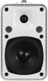 | IP classification: | IP65 | | Power: | Program: 80W Rated: 40W RMS (16 Ohm) | | Frequency range: | 75 - 20000 Hz | | Sensitivity: | 88 dB (1W/1m) | | Max. SPL: | 103 dB | | Dispersion angle: | 120° x 90° | | Impedance: | 16 ohms | | Attachment system: | Mounting bracket | | Connections: | Speaker via screw terminal | | Crossover frequency: | 3500 Hz | | Speaker: | 1 x woofer 4" Voice coil lows 1" 1 x dome tweeter 0.8" Voice coil calotte tweeter 0.8" | | Type of speaker: | Compact cabinet speaker; on ceiling/on wall speaker | | Color: | White | | Dimensions: | Width: 14.1 cm Depth: 17 cm Height: 23 cm | | Weight: | 5.10 kg |