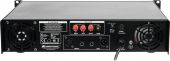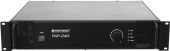 | Power supply: | 230 V AC, 50 Hz | | Output power: | 240 W RMS | | Power connection: | Fixed power supply cord with safety plug | | Frequency range: | 60 - 16000 Hz | | S/N ratio: | >90 dB line | | THD: | <0.5 % at 1 kHz | | Cooling: | 1 x temperature-controlled fan , air flow from front to rear | | Impedance: | 4-16 ohms; public address systems 100V; Public address systems 70V | | Circuitry: | Class AB | | Control elements: | Level control, power switch | | Controls: | Softstart; overheat; overload; short-circuit; DC voltage | | Status LED: | Signal, power, fault, clip | | Connections: | Input: line via 1 x 6.3 mm jack socket (mono) mounting version Input: line via 1 x 3-pin XLR 0.8 V Output: line via 1 x 6.3 mm jack socket (mono) mounting version Output: line via 1 x 3-pin XLR Output: speaker via screw terminal | | Material: | Metal | | Color: | Black | | Housing design: | (19") 48.3 cm rack installation 2 U | | Dimensions: | Width: 48.3 cm Depth: 38.5 cm Height: 8.9 cm | | Weight: | 9.77 kg |