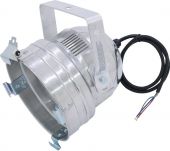 | Power supply: | 230 V AC, 50 Hz | | Power consumption: | Max. 500 W | | IP classification: | IP20 | | Protection class: | Protection class I | | Suitable lamp: | Max. 230 V/500 W PAR-56 | | Power connection: | Fixed supply cord with open wires | | Cable construction: | 3 x 0.75 mm² H05SS-F | | Cable length: | Approx. 0.8 m | | Base: | GX16d | | Lamp type: | Selectable | | Color generation: | Via color filter frame | | Cooling: | Passive convection cooling | | Housing color: | Silver | | Attachment system: | Mounting bracket | | Material: | Aluminum | | Slot for spot length: | 21.4 cm x 21.8 cm | | Dimensions: | Length: 26 cm Width: 23.5 cm Height: 22 cm | | Weight: | 0.80 kg | | Mounting bracket | | | Diameter mounting holes: | 2 x Ø13mm | | Material: | Metal, 2 mm | | Filter frame | | | Diameter mounting holes: | 4 x Ø8mm | | Shape: | Octagonal | | Grid size: | 10 x 10 mm | | Material: | Aluminum, 0.6 mm | | Dimensions: | Length: 21.5 cm Width: 21.5 cm Diameter: Ø 17.1 cm | | Lamp clamping ring | | | Material: | Steel, 4 mm | | Color: | Silver | | Legal specifications | | | Special product: | Not designed for household room illumination | | Intended use: | Show effect lighting |