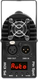 PS10W er et lyst pinspot med en 10 watt 4-i-1 LED. Lysdioden er opbygget med farverne rød, grøn, blå og hvid. På grund af den smalle lys kegle er det ideelt at sigte på spejlkugler. Giver den galaktiske mælkevejseffekt, når lyset afspejler spejlet. Pin spottet kan styres via DMX eller køre fritstående i auto eller lydaktiveret tilstand. Pin spottet kan ændre farverne over tid eller indstilles til en bestemt farve. Selv efter at strømmen er slukket, vil pin spottet huske sin sidste indstilling.