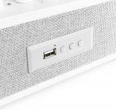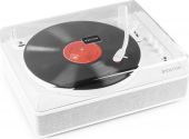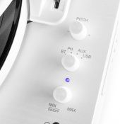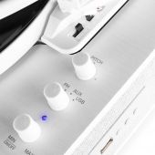 Pladespiller, høj kvalitet, Bluetooth send+modtag/ indbygget højttaler, håndbygget design i hvid
