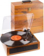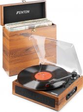 Nyd den autentiske retrolyd af vinyl og afspil alle dine bedste plader på denne Fenton RP170. I dette sæt får du også en smart opbevaringskasse der matcher pladespillerens udseende og som du kan opbevare op til 30 plader i. Pladespilleren har 3 hastigheder og kan altså afspille pladerne i 33 1/3,45 og 78 rpm. Den er også udstyret med diverse input og output muligheder, såsom stik til hovedtelefoner. Bluetooth funktionen gør pladespilleren og dens indbyggede højttalere til en trådløs højttaler hvis du forbinder den til din telefon, tablet eller computer.