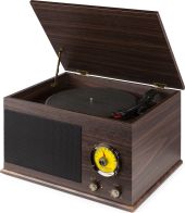 Lyt til din yndlingsvinyl med denne autentiske pladespiller i vintage design med et lækkert look i mørkt træfiner. Denne alsidige pladespiller understøtter 3 afspilningshastigheder (33 1/3, 45 og 78 o/min), så næsten enhver LP kan afspilles.