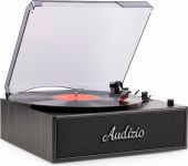 |  | Bring back the timeless charm of vinyl with the Audizio Reno, a stylish record player designed for true music lovers. Inspired by vintage aesthetics and modern simplicity, the Reno turntable features a warm wood finish, built-in stereo speakers, and a protective dust cover, all wrapped in a nostalgic retro design. Whether you're spinning old classics or discovering new favourites, the Reno is perfect for casual listening and home decor alike. With the built-in BT receiver, digital music can also be streamed wirelessly from a smartphone, tablet PC or other BT compatible device and can be listened to the stereo speakers. - Wooden record player in retro look