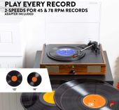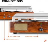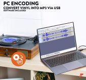 |  | Med denne RP106W bliver du taget tilbage i tiden, når du genlever den klassiske retrolyd fra dine plader. Den håndlavede kabinet har 2 indbyggede højttalere, så du kan nyde musikken uden at skulle tilslutte pladeafspilleren til et anlæg - dette er dog muligt hvis du ønsker det via RCA/ Phono-udgangene. Vil du blot nyde musikken i stilhed, kan du tilslutte et par høretelefoner og blot læne dig tilbage. Du kan også vælge at gøre din pladesamling digital ved at overfører musikken til din computer via det medfølgende USB-kabel. - Pladespiller i håndlavet trækabinet med to indbyggede højttalere