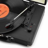 Nyd den autentiske vinyl-lyd med Audizio RP116 pladespilleren. Denne stilfulde kuffertpladespiller med PU-læderfinish er let og gør det muligt at lytte til musik uden at tilslutte et eksternt højttalersystem. Pladespilleren kan tilsluttes trådløst til højttalere, hovedtelefoner og andre enheder med BT-teknologi eller til kablede lydsystemer og aktive højttalere. Den indbyggede BT-modtager gør det også muligt at streame digital musik trådløst fra smartphone, tablet eller andre BT-kompatible enheder og afspille det via de indbyggede stereohøjttalere.