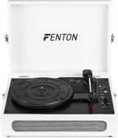 |  | Nyd den autentiske lyd af vinyl og afspil alle dine yndlingsplader med Fenton RP118 pladespilleren. Den tre-hastigheds pladespiller kan afspille 33, 45 og 78 RPM plader og har en moderne PU-læderfinish samt et letvægtsdesign, der gør den nem at transportere, så du kan tage den med overalt. Pladespilleren kan tilsluttes trådløst til højttalere, hovedtelefoner og andre enheder med BT-teknologi eller til kablede lydsystemer og aktive højttalere. Med den indbyggede BT-modtager kan digital musik også streames trådløst fra smartphone, tablet eller andre BT-kompatible enheder og afspilles via de indbyggede stereohøjttalere. - Højkvalitets pladespiller i kuffertdesign