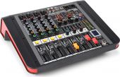 |  | Bordplade design musik mixer med indbygget forstærker og mange attraktive funktioner. Funktioner inkluderer mute og solo knapper på hver kanal, indbygget USB-afspiller med digital display og BT-modtager til at streame musik til mixeren under pausen. Ideel til live setups og små bands. - 4 Balanceret mono mikrofon-/linjeindgang (Combi XLR/Jack)