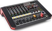 |  | Bordplade design musik mixer med indbygget forstærker og mange attraktive funktioner. Funktioner inkluderer mute og solo knapper på hver kanal, indbygget USB-afspiller med digital display og BT-modtager til at streame musik til mixeren i pauserne. Ideel til live opsætninger og små bands. - 6 Balanceret mono mikrofon-/linjeindgang (Combi XLR/Jack)