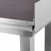 Aluminium skirting profile fixing strip with kick-toe boards to secure rolling materials from falling of the stage. With the ability to attach stage skirts to the stage decks. Prefinished with hook-and-loop fastener and connection points.