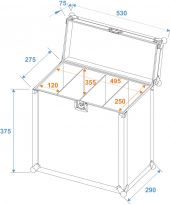 | Maximum load: | 25 kg | | Aluminum profile frames: | 30 mm | | Case handle: | 1 pc/pcs | | Stop hinge: | 2 pc/pcs | | Lock: | Butterfly lock: 1 pc/pcs | | Use of brands: | Branded hardware | | Material: | Birch multiplex, 7 mm | | Color: | Dark brown, laminated | | Compartment dimensions: | 12 cm x 25 cm x 35.5 cm | | Inside dimensions: | 49.5 cm x 25 cm x 35.5 cm | | Dimensions: | Width: 52.5 cm Depth: 28.5 cm Height: 44.5 cm | | Weight: | 7.65 kg |