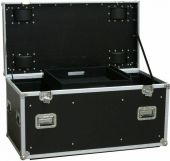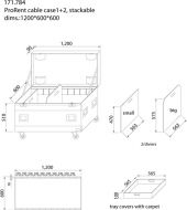 One large and solid cable case for storing all "Roadie" necessities. No more mounting materials, wires, cables, microphones, etc. laying around. The case is made of solid laminated plywood. With flip-handles, butterfly latches and 3.5 " wheels (2 lockable). Supplied with 2 moveable partition panels and tray cover with carpet. - Laminated multiplex