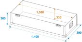| Maximum load: | 100 kg | | Removable covers: | 1 pc/pcs | | Aluminum profile frames: | 25 mm | | Case handle: | 4 pc/pcs | | Lock: | Butterfly lock: 4 pc/pcs | | Transport aid: | 4 x castors with 2 locking brakes | | Use of brands: | Branded hardware | | Material: | Plywood multi-layer glued; birch multiplex | | Color: | Dark brown, laminated | | Device compartment: | 127 cm x 7 cm x 79.5 cm | | Inside dimensions: | 136 cm x 35 cm x 79.5 cm | | Width: | Maximum: 127 cm Minimum: 112 cm | | Dimensions: | Width: 140 cm Depth: 39 cm Height: 98.5 cm | | Weight: | 41.70 kg |