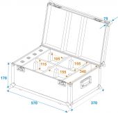 | Power supply: | 100-240 V AC, 50/60 Hz | | Power consumption: | Max. 1150 W | | Power connection: | Mains input via P-Con (blue), mounting version power supply cord with safety plug (provided) | | Device fuse: | 5 x 20 mm, T 5 A fuse replaceable | | Aluminum profile frames: | 30 mm | | Case handle: | 2 pc/pcs | | Stop hinge: | 2 pc/pcs | | Lock: | Butterfly lock: 2 pc/pcs with shut-off function | | Material: | Plywood multi-layer glued, 9 mm | | Color: | Black, laminated | | Compartment dimensions: | 15.5 cm x 15.5 cm x 11.5 cm | | Accessory compartment: | 9 cm x 34 cm x 11.5 cm | | Dimensions: | Width: 57 cm Depth: 37 cm Height: 24.5 cm | | Weight: | 9.10 kg |