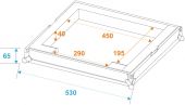 | Maximum load: | 25 kg | | Aluminum profile frames: | 25 mm | | Carrying handle: | 1 pc/pcs | | Lock: | Butterfly lock: 1 pc/pcs | | Use of brands: | Branded hardware | | Material: | Birch multiplex, 7 mm | | Color: | Dark brown, laminated | | Device compartment: | 45 cm x 19.5 cm x 40 cm | | Dimensions: | Width: 42 cm Depth: 32 cm Height: 17.5 cm | | Weight: | 4.05 kg |