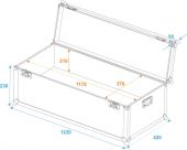 | Maximum load: | 50 kg | | Aluminum profile frames: | 30 mm | | Case handle: | 2 pc/pcs | | Stop hinge: | 3 pc/pcs | | Lock: | Butterfly lock: 2 pc/pcs | | Transport aid: | Stackable steel ball corners | | Material: | Plywood multi-layer glued, 7 mm | | Color: | Black, laminated | | Inside dimensions: | 117.5 cm x 37 cm x 21 cm | | Dimensions: | Width: 122 cm Depth: 42 cm Height: 33 cm | | Weight: | 13.30 kg |     |  |  |