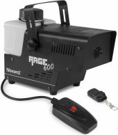 Rage 600 er en kompakt 600W røgmaskine i et kraftigt metalhus. Drevet af et 600W varmelegeme, der leverer op til 65 m³ per minut output og opvarmes på kun 3 minutter. Det ideelle valg til mobile DJ's og meget velegnet til mindre spillesteder. Betjening med et kablet (3 m kabel) og en trådløs fjernbetjening.