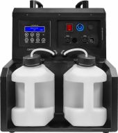 | Product colour | Black | | Heat-up time (minutes) | 3 | | Output volume per minute | 250m³ | | Tank capacity | 2x 1.2l | | Light source | 4-in-1 LED | | Colours | Red, Green, Blue, White | | Quantity of LEDs | 24 | | Modes | Automatic programs, DMX, Manual | | DMX channels | 11 | | DMX connection | 3-pin XLR, 5-pin XLR | | Power supply | 100-240VAC 50/60Hz | | Dimensions (L x W x H) | 480 x 360 x 440mm | | Weight (kg) | 9,90 | | Included accessories | Remote control (wireless), Power cable |  |  |  |  | |