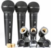 VX1800S er en kardioid dynamisk mikrofon til almindeligt brug, ideel til præsentationer, sang, karaoke osv. Med indbygget popfilter og holdbart metalhus. 3-i-1-sættet kommer til en meget attraktiv pris og leveres med 3 mikrofonholdere i en praktisk ABS-kasse med beskyttende skum. - Sæt af 3 mikrofoner