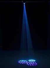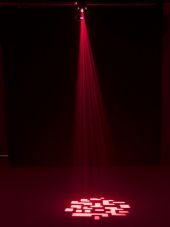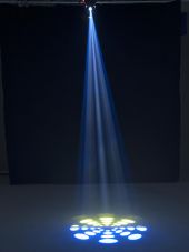 | Power supply: | 100-240 V AC, 50/60 Hz | | Power consumption: | 50 W | | IP classification: | IP20 | | Power connection: | Mains input via IEC connector (M) mounting version power supply cord with safety plug (provided) | | Lamp type: | LED lamp | | LED type: | 1 x 30 W COB (chip-on-board) cold white (CW) | | Flash rate: | 2 - 29 Hz | | Equipment: | Gobo wheel with static gobos; focus manual | | Color generation: | Color wheel with 7 dichroic filters plus open Half colors selectable, Rainbow effect with adjustable speed in both directions | | Gobos: | Gobo wheel with static gobos, 7 gobos and open Shake effect | | DMX channels: | 9 | | DMX input: | 1 x 3-pin XLR (M) mounting version | | DMX output: | 1 x 3-pin XLR (F) mounting version | | Cooling: | Cooling fan | | Control: | DMX; stand-alone; sound to light via microphone | | Preprogrammed in: | Light´J; LED PC-Control 512; EASY SHOW 1; Light Captain; EASY SHOW 2; EASY SHOW 3 | | Beam angle: | 12° | | Beam angle (1/2 peak): | 12° | | Illuminance in Lux (lx): | Cold white (CW) 3m: 1212 lx, 6m: 309 lx | | Housing color: | Black | | Display type: | LCD display | | Dimensions: | Width: 16.5 cm Depth: 33 cm Height: 19.5 cm | | Weight: | 2.88 kg | | Legal specifications | | | Special product: | Not designed for household room illumination | | Intended use: | Show effect lighting |