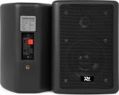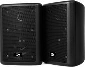 Højttalersæt med høj belastbarhed, og trapezformet ABS kabinet der giver høj udnyttelse af pladsen ved ophæng i hjørner. Forsynet med et robust stålgitter der beskytter de 2 enheder. Basenhed med Mica membran og Mylar diskant sikrer en god lyd over hele frekvensområdet. Sættet leveres komplet med justerbare ophængsbøjler, og kan valgfrit placeres i lodret eller vandret position. Anbefales til HiFi, surround, butikker mv. - Pris pr. sæt