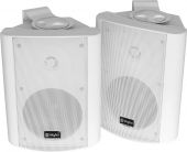 Højttalersæt med høj belastbarhed, og trapezformet ABS kabinet der giver høj udnyttelse af pladsen ved ophæng i hjørner. Forsynet med et robust stålgitter der beskytter de 2 enheder. Basenhed med Mica membran og Mylar diskant sikrer en god lyd over hele frekvensområdet. Sættet leveres komplet med justerbare ophængsbøjler, og kan valgfrit placeres i lodret eller vandret position. Anbefales til HiFi, surround, butikker mv. - Pris pr. sæt