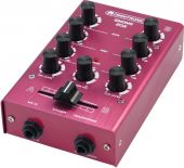 | Power supply: | 100-240 V AC, 50/60 Hz 12V 500 mA | | Pin configuration: | Inside + / outside - | | Power consumption: | 6.00 W | | Protection class: | Protection class III | | Power connection: | Mains input via coaxial power connector (M) mounting version power supply cord with AC adapter (provided) | | Frequency range: | 20 - 20000 Hz | | S/N ratio: | >85 dB | | THD: | <0.5 % at 1 kHz | | Housing color: | Red | | Control elements: | Crossfader | | Status LED: | Power | | Connections: | Input: line via 2 x stereo RCA Input: microphone via 1 x 6.3 mm plug (unbal.) Output: master via 1 x stereo RCA Output: rec. via 1 x stereo RCA Output: headphones via 1 x 6.3 mm jack socket (stereo) mounting version | | Channels: | Input chanel: 2 x stereo via RCA, channel control via rotary dial, 2-band tone control EQ Microphon chanal: 1 x mono via jack, channel control via rotary dial Master output: 1 x stereo via RCA, channel control via rotary dial Headphones output: , channel control via rotary dial | | Housing design: | Desktop console housing | | Dimensions: | Width: 10 cm Depth: 16.5 cm Height: 6 cm | | Weight: | 0.50 kg |