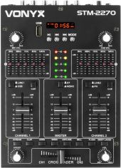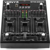 This 4-channel compact mixer is ideal for start up DJs or small gigs. The STM2270 combines technical features with a table top design. Among the features are a BT receiver and MP3 player. As extra the STM2270 is equipped with 8 fully customizable effects.