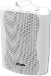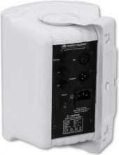 | Power supply: | 230 V AC, 50 Hz | | Protection class: | Protection class I | | Power connection: | Mains input via IEC connector (M) mounting version power supply cord with safety plug (provided) | | Power: | Program: 80W Rated: 50W RMS | | Frequency range: | 50 - 20000 Hz | | Sensitivity: | 89 dB (1W/1m) | | Attachment system: | Mounting bracket | | Control elements: | Level control, tone control, power switch | | Connections: | Input: line via 1 x 3-pin XLR (F) mounting version Output: 1 x 3-pin XLR (M) mounting version | | Speaker: | 1 x woofer 5" Basket material: steel Conematerial: cardboard/paper 1 x tweeter 1" | | Material: | ABS Acrylonitrile butadiene styrene | | Color: | White, scratchproof and shockproof | | Dimensions: | Width: 18 cm Depth: 16.6 cm Height: 23 cm | | Weight: | 6.40 kg |