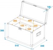 | Material: | Plywood multi-layer glued | | Color: | Black, laminated | | Inside dimensions: | 46 cm x 38.5 cm x 34.5 cm | | Device compartment: | 46 cm x 32.5 cm x | | Dimensions: | Width: 51 cm Depth: 44 cm Height: 65 cm | | Weight: | 12.25 kg |     |  |  |  | |