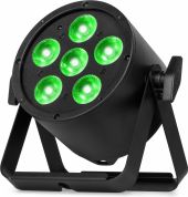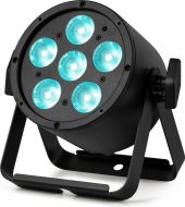 Aluminium kompakt LED ProPar fra beamZ BAC3 serien, udviklet med den nyeste LED-teknologi. Kombinationen af high-power LEDs indbygget i et attraktivt støbt aluminiumshus sikrer effektiv varmeafledning, hvilket eliminerer behovet for en intern blæser og gør denne Par helt lydløs i drift. OLED-display med 4-knaps LED-menu giver nem adgang til funktioner som DMX, master/slave, lydaktivering og stand-alone funktion. Udstyret med P-Con ind/ud og XLR 3-pin ind/ud stik til kædning af flere enheder. Magnet foran til valgfrit tilbehør: Filter 40° (150.812), Barndoor (150.813).
