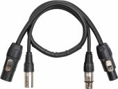 | Product colour | Black | | IP rating | IP65 | | Connections | Powerconnector Tr IP65 (A), Powerconnector Tr IP65 (B), 3-pin XLR IP65 (M), 3-pin XLR IP65 (F) | | Lead length | 0.5m | | Power cable | 3x 1.5mm² | | Conductor | 8x0.2mm | | Outer diameter | 10.8mm | | Shielding | 64x0.08mm | | Impedance | 120 Ohm | | Weight (kg) | 0,25 |   |  |  |  | |