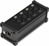 |  | The PDConnex Splitter Boxes are ideal for a wide range of applications including stage sound, lighting, and recording studio settings. With 4 channels and 3 pins XLR-connectors, this compact multi-network adapter can be used to connect a variety of audio devices to a single network cable up to 100 meters long, without the need to download any software or drivers. Also includes a location to thread on a clamp or adapter with an M10 thread hole. Plug-and-play. - Stagebox with 4 XLR connections (female) to RJ45