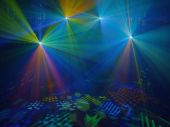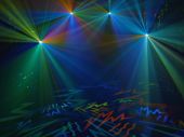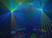 Bright gobo flower with rotating, colorful faceted mirror and varied gobos