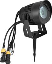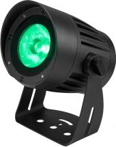 | Power supply: | 100-240 V AC, 50/60 Hz | | Power consumption: | 36 W | | IP classification: | IP65 | | Protection class: | Protection class I | | Power connection: | Mains input via IP T-Con (M) power supply cord with safety plug included | | Power output: | IP T-Con (F) | | Lamp type: | LED lamp | | LED type: | 1 x 40 W 4in1 QCL RGBW (homogenous color mix) | | Flash rate: | 0.8 - 22 Hz | | Equipment: | Frost filter | | DMX channels: | 3; 4; 6; 8; 11 | | DMX input: | 3-pin XLR (M) IP | | DMX output: | 3-pin XLR (F) IP | | Cooling: | Passive convection cooling | | Control: | Stand-alone; IR remote control; DMX; master/slave function; sound to light via microphone | | Preprogrammed in: | Light Captain; EASY SHOW 1; EASY SHOW 2; EASY SHOW 3; Colorchief | | Projection: | Flicker-free | | Setup: | Easy installation | | Beam angle: | 4° | | Beam angle (1/2 peak): | 4° Frost filter 20° | | Beam angle (1/10 peak): | 8° | | Color temperature: | 7400K | | Housing color: | Black | | Attachment system: | Mounting bracket | | Display type: | LCD display | | Dimensions: | Length: 11 cm Width: 14.3 cm Height: 19.6 cm | | Weight: | 2.23 kg | | Noise classification: | Class 0 (no noise at all) | | Mounting bracket | | | Diameter mounting holes: | 3 x Ø11mm; 2 x Ø6mm | | Material: | Aluminum, 2 mm | | Power cord | | | Cable construction: | 3 x 1.0 mm² H07RN-F | | Cable length: | Approx. 1.2 m | | Stake | | | Material: | Plastic | | Color: | Black | | Dimensions: | Height: 16 cm | | Frost filter | | | Material: | Plastic, 3 mm | | Dimensions: | Diameter: Ø 10.3 cm | | Remote control | | | Battery: | 1 x button cell 3.0 V CR2032 lithium manganese built-in | | Legal specifications | | | Special product: | Not designed for household room illumination | | Intended use: | Show effect lighting |