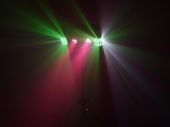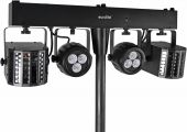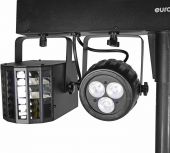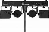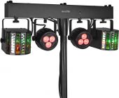 DMX lighting effect bar with 2 rotating LED derbies and 2 LED spotlights