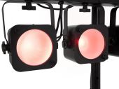 4 powerful LEDs 30 W COB (chip-on-board) 3in1 TCL RGB (homogenous color mix) spots controlled separately