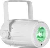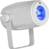 | Power supply: | 100-240 V AC, 50/60 Hz | | Power consumption: | 5 W | | IP classification: | IP20 | | Protection class: | Protection class II | | Power connection: | Fixed power supply cord with Euro plug | | Lamp type: | LED lamp | | LED type: | 1 x 5 W SMD 3535 4in1 QCL RGBW (homogenous color mix) | | Cooling: | Passive convection cooling | | Control: | Stand-alone; IR remote control; sound to light via microphone | | Beam angle: | 5° | | Beam angle (1/2 peak): | 5° | | Beam angle (1/10 peak): | 9° | | Housing color: | White | | Dimensions: | Width: 12.1 cm Depth: 14 cm Height: 13.7 cm | | Weight: | 0.45 kg | | Noise classification: | Class 0 (no noise at all) | | Remote control | | | Battery: | 1 x button cell 3.0 V CR2025 lithium manganese built-in | | Legal specifications | | | Special product: | Not designed for household room illumination | | Intended use: | Show effect lighting |