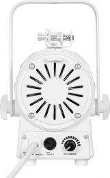 | Power supply: | 100-240 V AC, 50/60 Hz | | Power consumption: | 22 W | | IP classification: | IP20 | | Protection class: | Protection class I | | Power connection: | Fixed power supply cord with safety plug | | Fuse: | 5 x 20 mm, T 1 A fuse replaceable | | LED type: | 1 x 17 W COB (chip-on-board) Dim to warm | | Cooling: | Passive convection cooling | | Control: | Stand-alone; quick select potentiometer for brightness | | Projection: | Flicker-free | | Beam angle: | 17° | | Beam angle (1/2 peak): | 17° Frost filter 19° Frost filter 26° | | Beam angle (1/10 peak): | 36° Frost filter 40° Frost filter 53° | | Color temperature: | 3000K | | Color rendering index (CRI): | 92 Ra | | Illuminance in Lux (lx): | Warm white (WW) 3m: 727 lx, 6m: 188 lx | | Housing color: | White | | Attachment system: | Mounting bracket | | Transport aid: | Rubber feet | | Dimensions: | Length: 21.5 cm Width: 14.5 cm Depth: 21 cm | | Weight: | 2.23 kg | | Noise classification: | Class 0 (no noise at all) | | Legal specifications | | | Special product: | Not designed for household room illumination | | Intended use: | Show effect lighting |